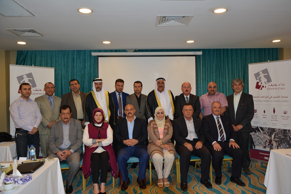 نظمت نداء جنيف وبالتعاون مع منظمة النجدة الشعبية وبالتنسيق مع الاتحاد الاوربي ورشة عمل لقادة المجتمع في محافظة نينوى,حول قانون النزاعات المسلّحة والقانون الدوليّ لحقوق الإنسان.